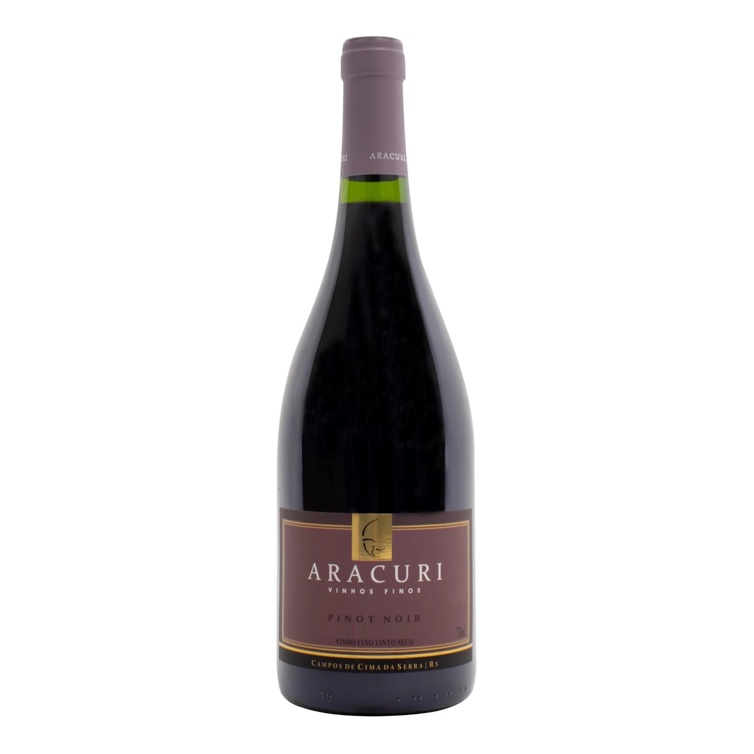 Vinho Tinto da vinícola Aracuri composto 100% por uvas Pinot Noir da safra 2023, provenientes de Campos de Cima da Serra/RS. Vinho aromático, complexo, equilibrado e de acidez vibrante.