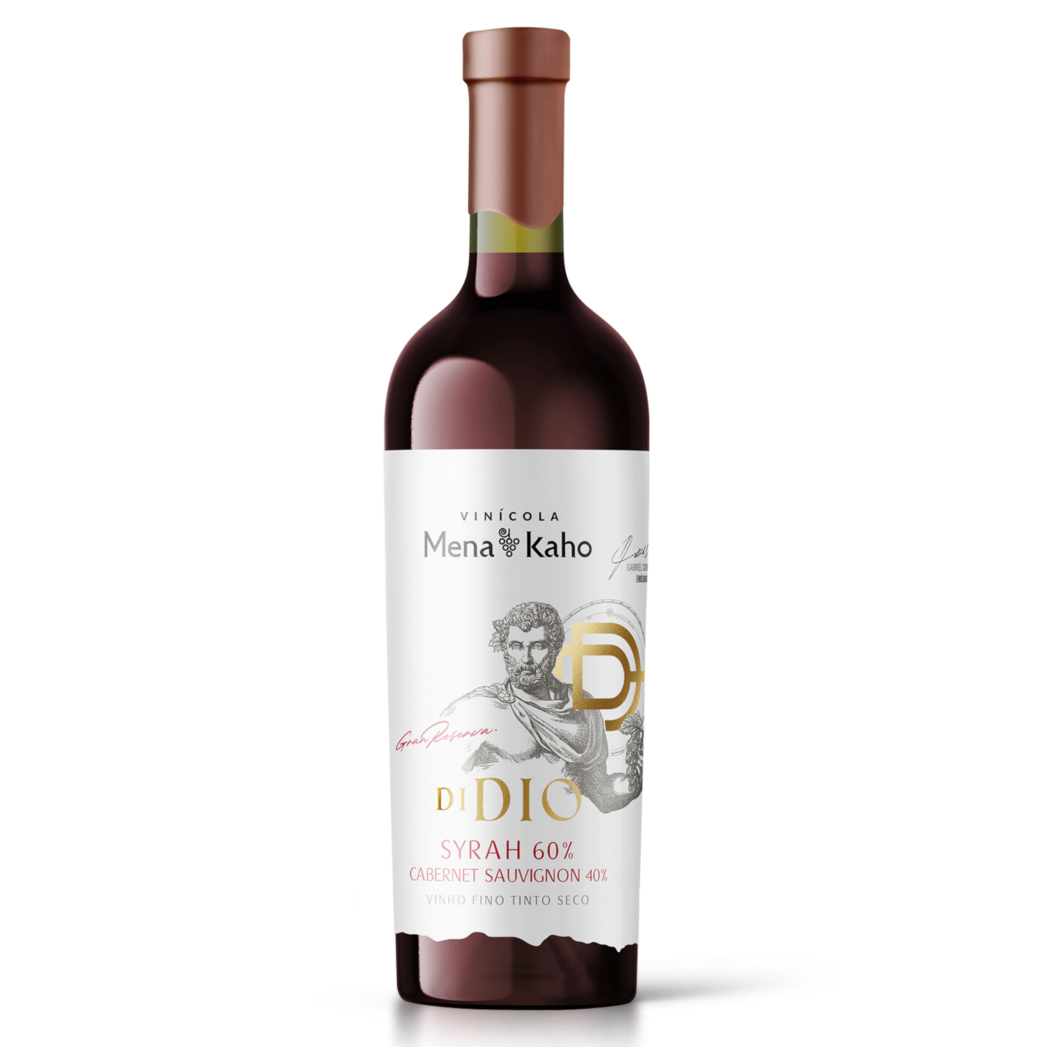 Vinho tinto Di Dio Gran Reserva da vinícola Mena Kaho composto por uvas Syrah e Cabernet Sauvignon das safras 2020 e 2023, provenientes da Serra Gaúcha/RS. Cada parcela do vinho maturou por 12 e 18 meses em barricas de Carvalho Francês. apresenta maciez, equilíbrio, frescor, especiarias e fruta madura. Excelente potencial de guarda.