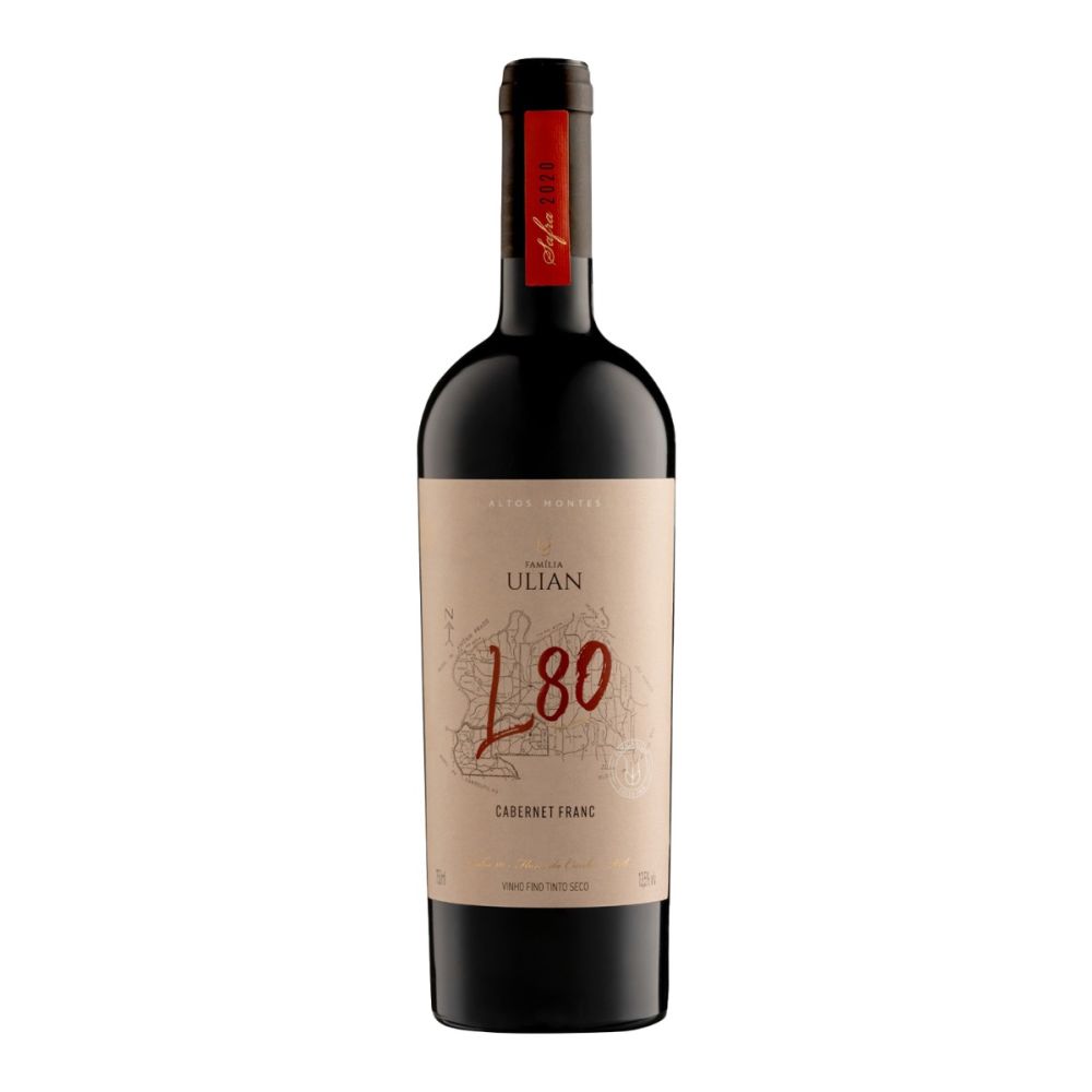 O vinho tinto L Oitenta da vinícola Ulian é composto 100% por uvas Cabernet Franc da excelente safra 2020. Possui 6 meses de passagem por barricas de carvalho. Trata-se de um vinho intenso, de taninos macios e persistência prolongada.